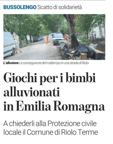 08 ottobre 2023 – Un fiore che non appassisce 09 settembre 2023 – Conferenza di presentazione del libro “Avanti Verona”01 luglio 2023 – Campagna “Senso Civico”17 giugno 2023 – ControVento scende in campo!22 maggio 2023 – Donazione giochi per bimbi alluvionati dell’Emilia Romagna17 aprile 2023 – Campagna “Senso Civico”10 febbraio 2023 – Giorno del Ricordo24 dicembre 2022 – Distribuzione giochiai bambini di Bussolengo(Vr)12 dicembre 2022 – Periodica donazione giochi al reparto pediatrico di Borgo Trento23 novembre 2022 – Conferenza “Scuola, sport e gender” con Francesco Borgonovo16 novembre 2022 – Percorso ludico-educativo al Parco Natura Viva30 ottobre 2022 – Campagna “Senso Civico”04-05 ottobre 2022 – Una scelta d’amore25 giugno 2022 – ControVento scende in campo!5 maggio 2022 – Manovre salvavita pediatriche16 aprile 2022 – Donazione di giocattoli alla Fondazione ABIO per l’Ospedale di Borgo Trento27 marzo 2022 – Campagna “Senso Civico” in collaborazione con il Comune di Bussolengo05-20 febbraio 2022 – Mostra “L’esodo degli italiani dell’Adriatico orientale: dall’Istria, Fiume e Dalmazia ai campi profughi29 gennaio 2022 – Donazione di giocattoli ed indumenti per bambini alla Fondazione ABIO per gli ospedali veronesi18 dicembre 2021 – Campagna “Senso Civico”07 agosto 2021 – ControVento scende in campo!13 giugno 2021 – ControVento inaugura l’aerea giochi donata alla comunità06 marzo 2021 – Campagna “Senso Civico”10 febbraio 2021 – Giorno del Ricordo26 novembre 2020 – Donazione di giocattoli al reparto di pediatria dell’Ospedale di Borgo Trento08 ottobre 2020 – Conferenza di presentazione del libro “Sergio Ramelli, una storia che fa ancora paura”05 settembre 2020 – Campagna “Senso Civico”08-09 agosto 2020 – ControVento scende in campo!20 giugno 2020 – Campagna “Senso Civico”Dal 06 aprile 2020 – Carrello solidale in collaborazione con il Comune di Bussolengo10 febbraio 2020 – Giornata del Ricordo24 dicembre 2019 – Campagna “Senso Civico”21 novembre 2019 – Conferenza “Introduzione all’economia – Finanza vs Realtà”04 novembre 2019 – Giornata dell’Unità Nazionale e delle Forze Armate07 settembre 2019 – Inaugurazione nuova sede a San Vito di Bussolengo17 agosto 2019 – Campagna “Senso Civico”25 luglio 2019 – Conferenza “Manovre salvavita pediatriche”23 giugno 2019 – ControVento scende in campo!23 maggio 2019 – Conferenza “La Sindrome di Down vista da un padre” in collaborazione con Impavidi Destini Trentino Alto Adige20 marzo 2019 – Conferenza “Emotiva-mente Alzheimer”22 febbraio 2019 – Conferenza di presentazione del fumetto “Foiba Rossa – Norma Rossa storia di un’italiana”10 gennaio 2019 – Conferenza di presentazione del libro “Chi sparò ad Acca Larenzia?” Settembre 2018 – ControVento partecipa alla raccolta firme “Petizione per la sicurezza di pedoni e ciclisti sulle nostre strade”30 agosto 2018 – Campagna “Senso Civico”23 agosto 2018 – ControVento collabora alla “Festa d’estate” organizzata al Comune di Bussolengo29 giugno 2018 – Prima giornata della campagna “Senso Civico”